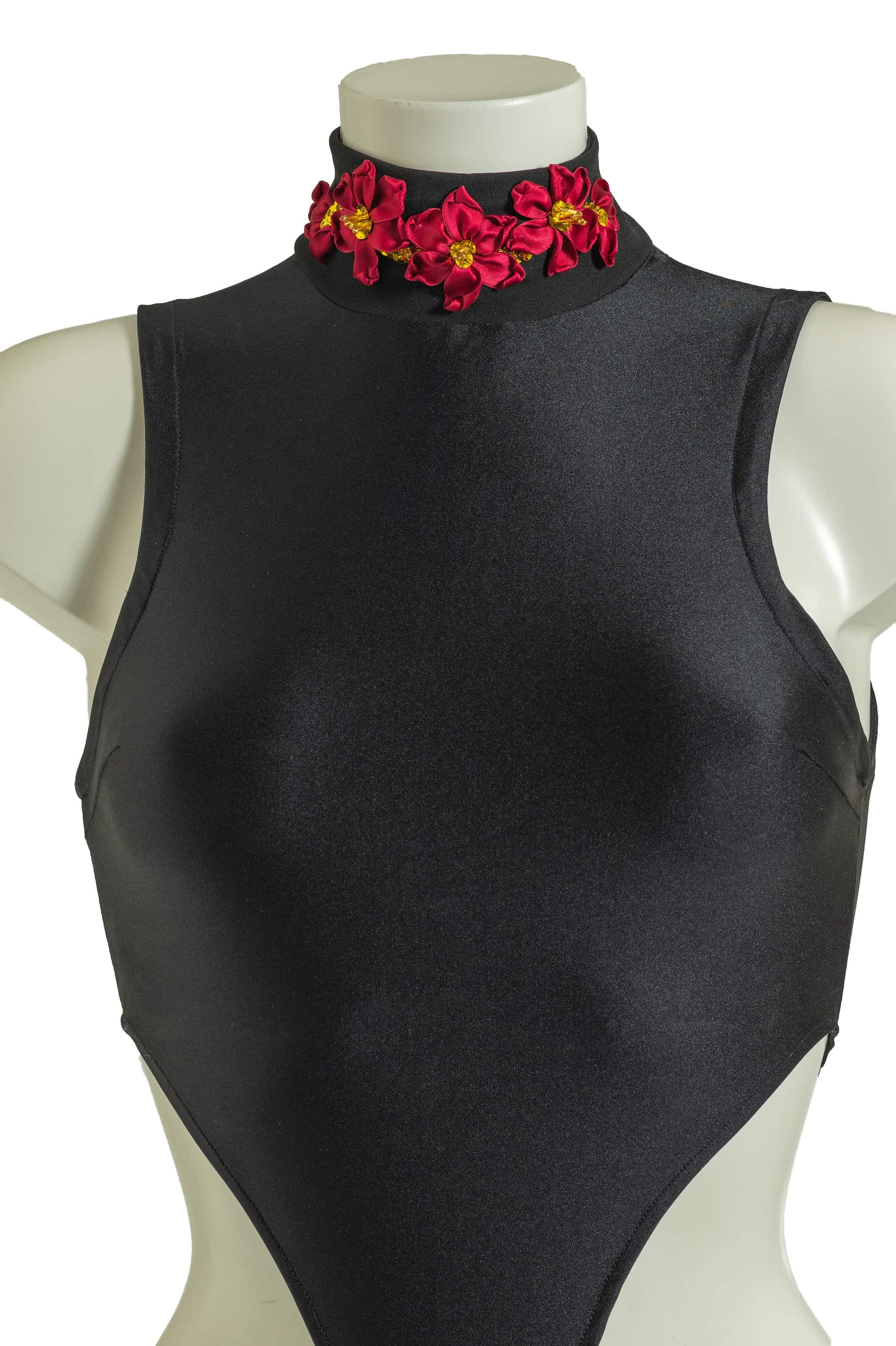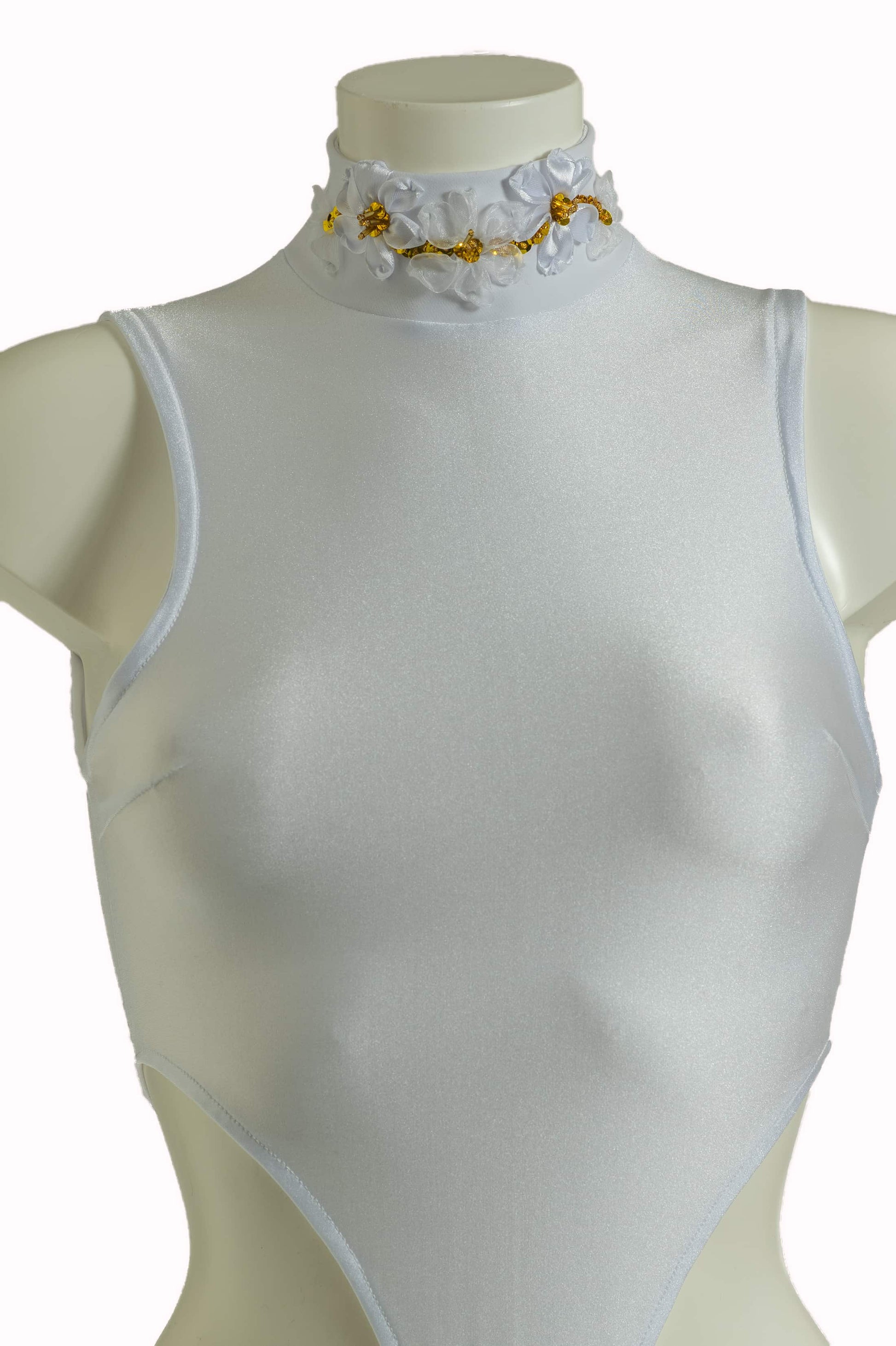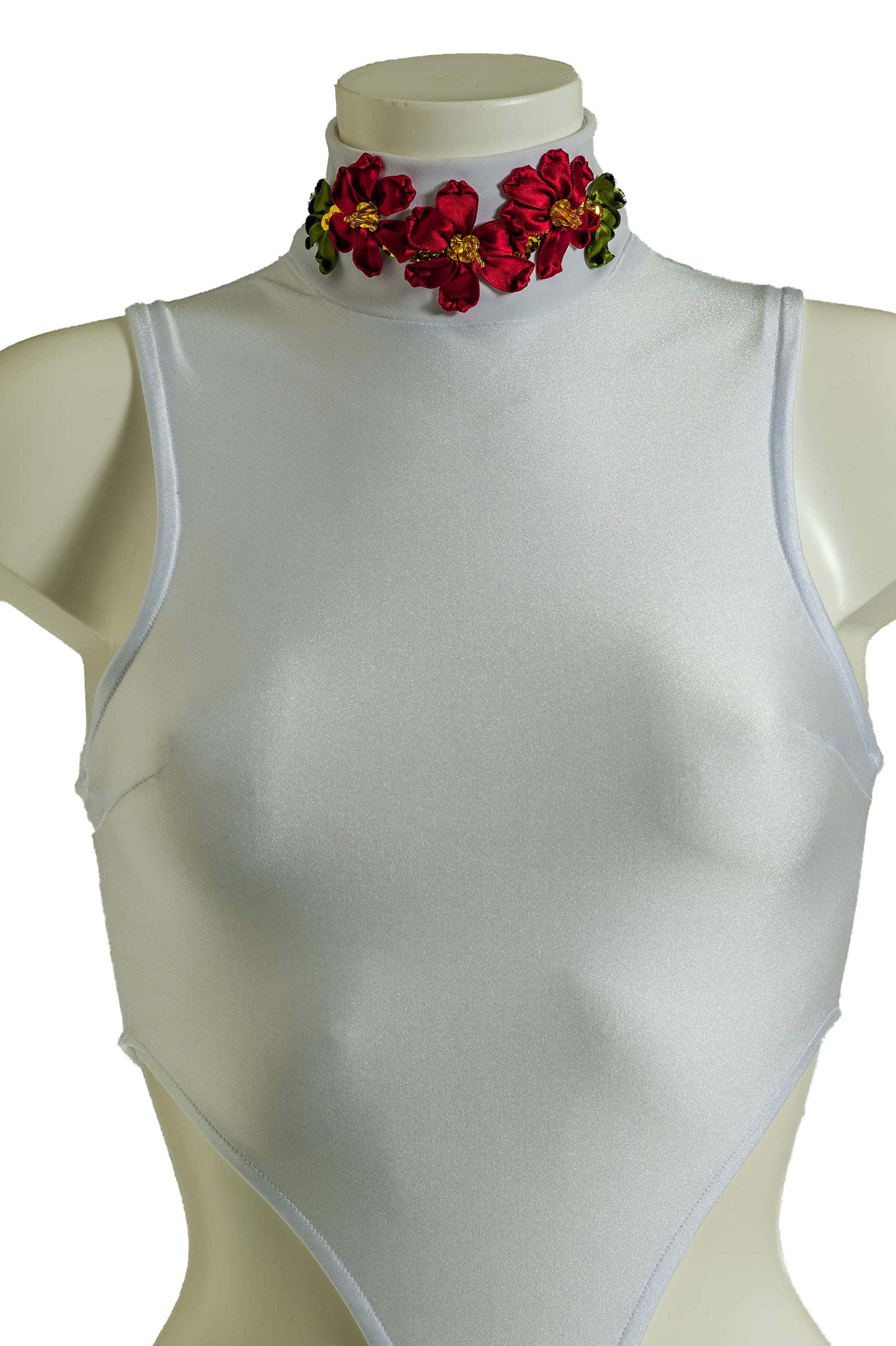 Bodysuit in white or black Lycra with an elegant hand-embroidery made by the expert hands of our embroiderer. A refined embroidery with silk ribon technique.