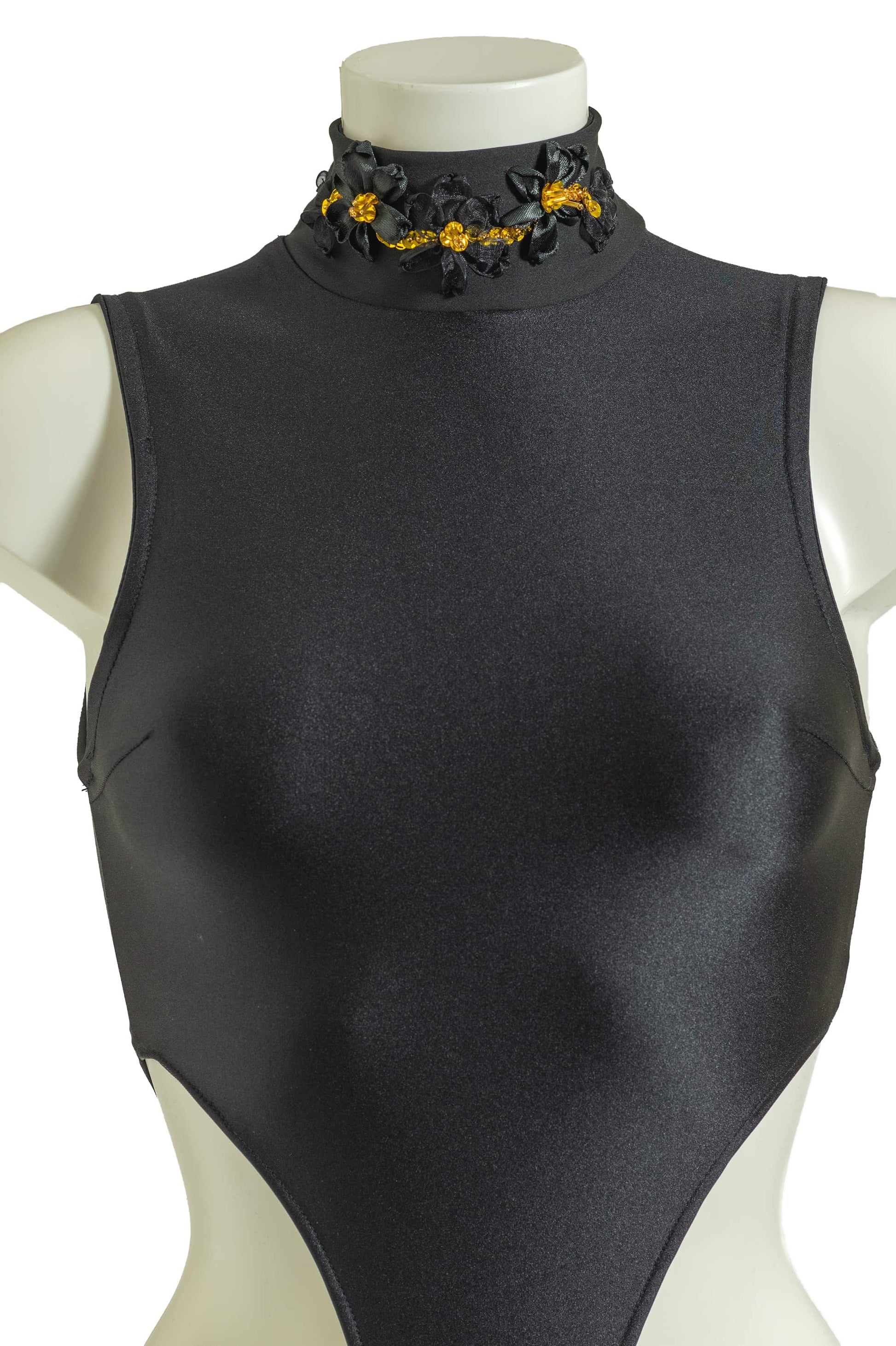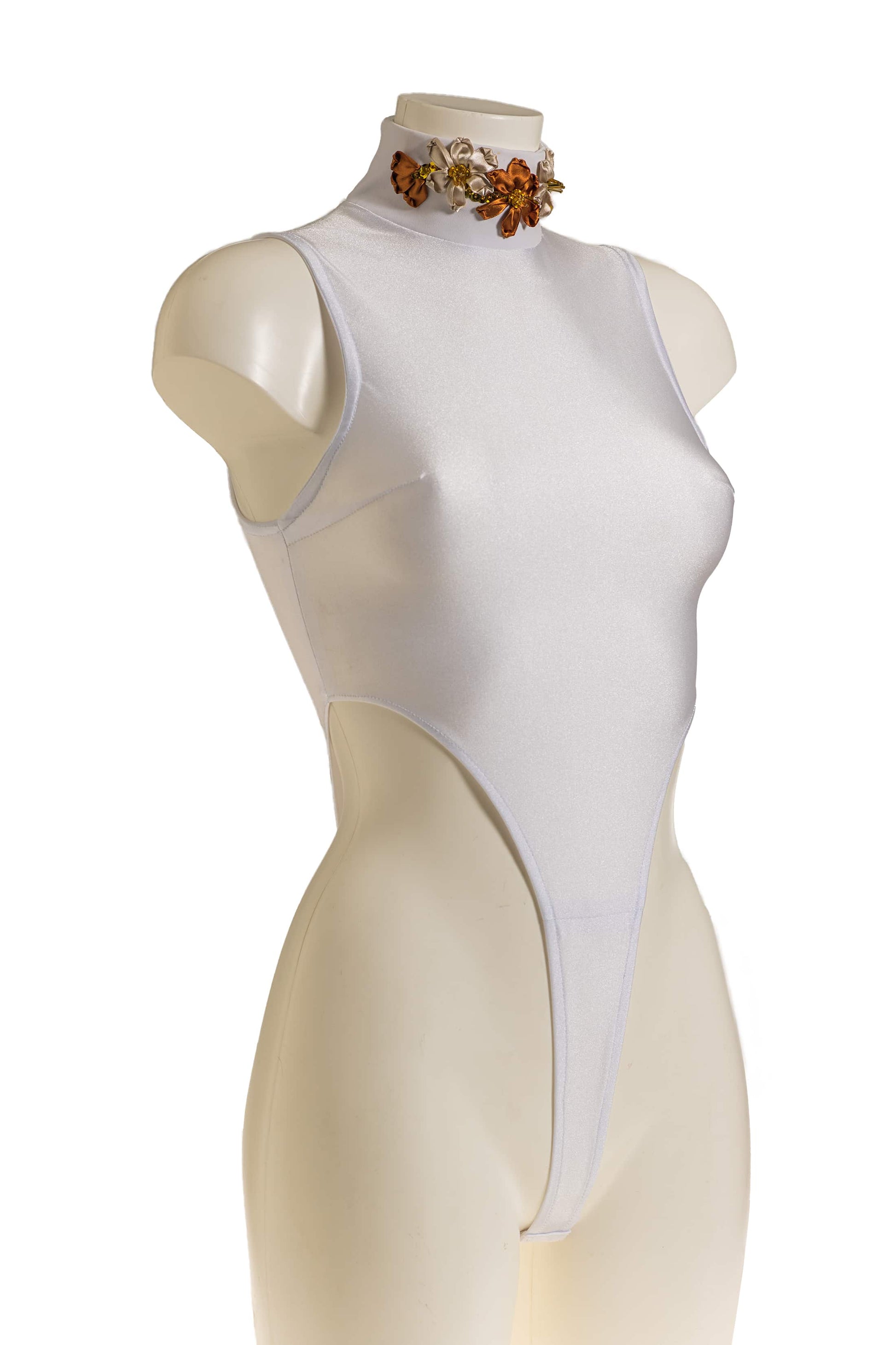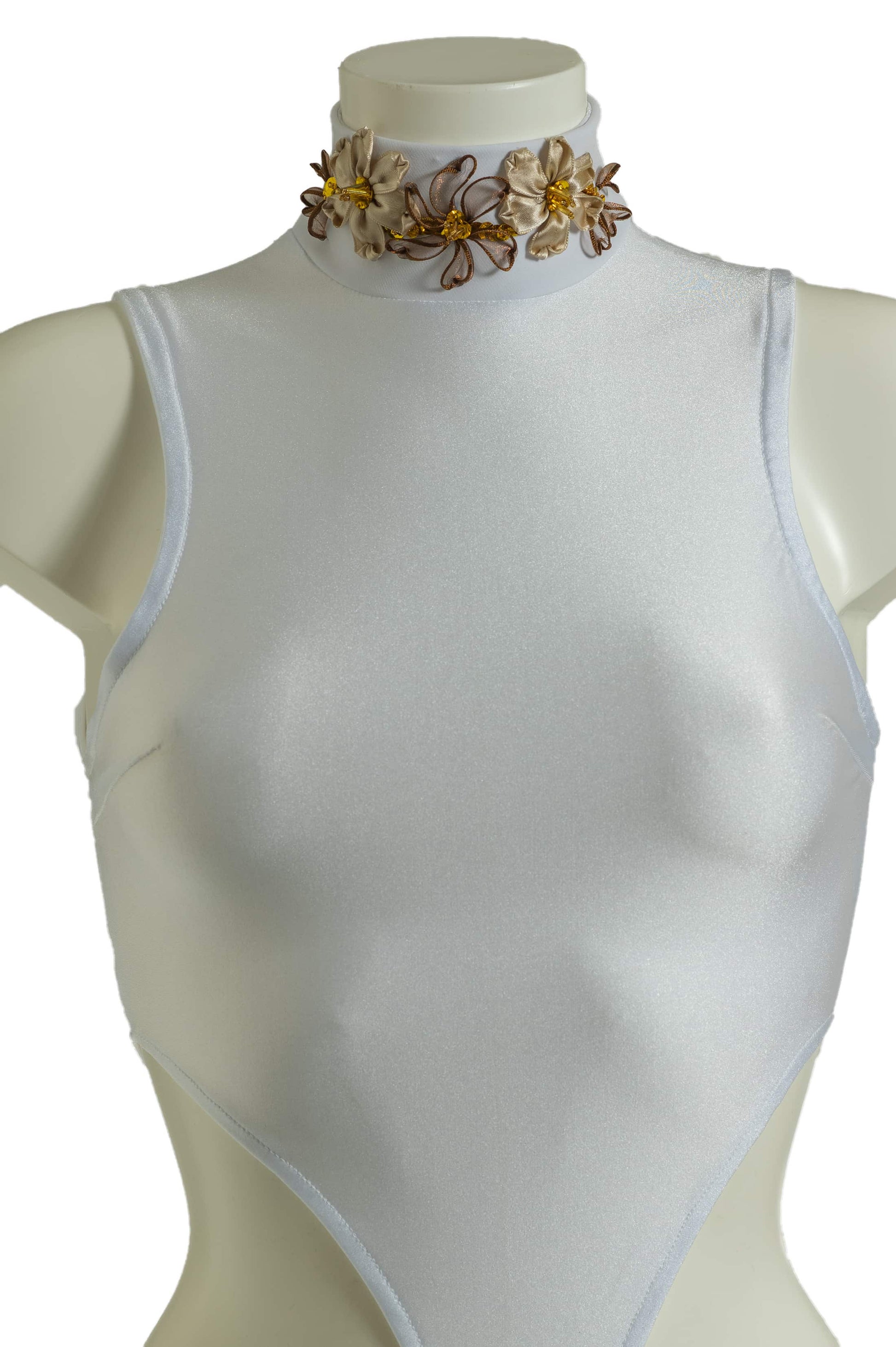 Bodysuit in white or black Lycra with an elegant hand-embroidery made by the expert hands of our embroiderer. A refined embroidery with silk ribon technique.