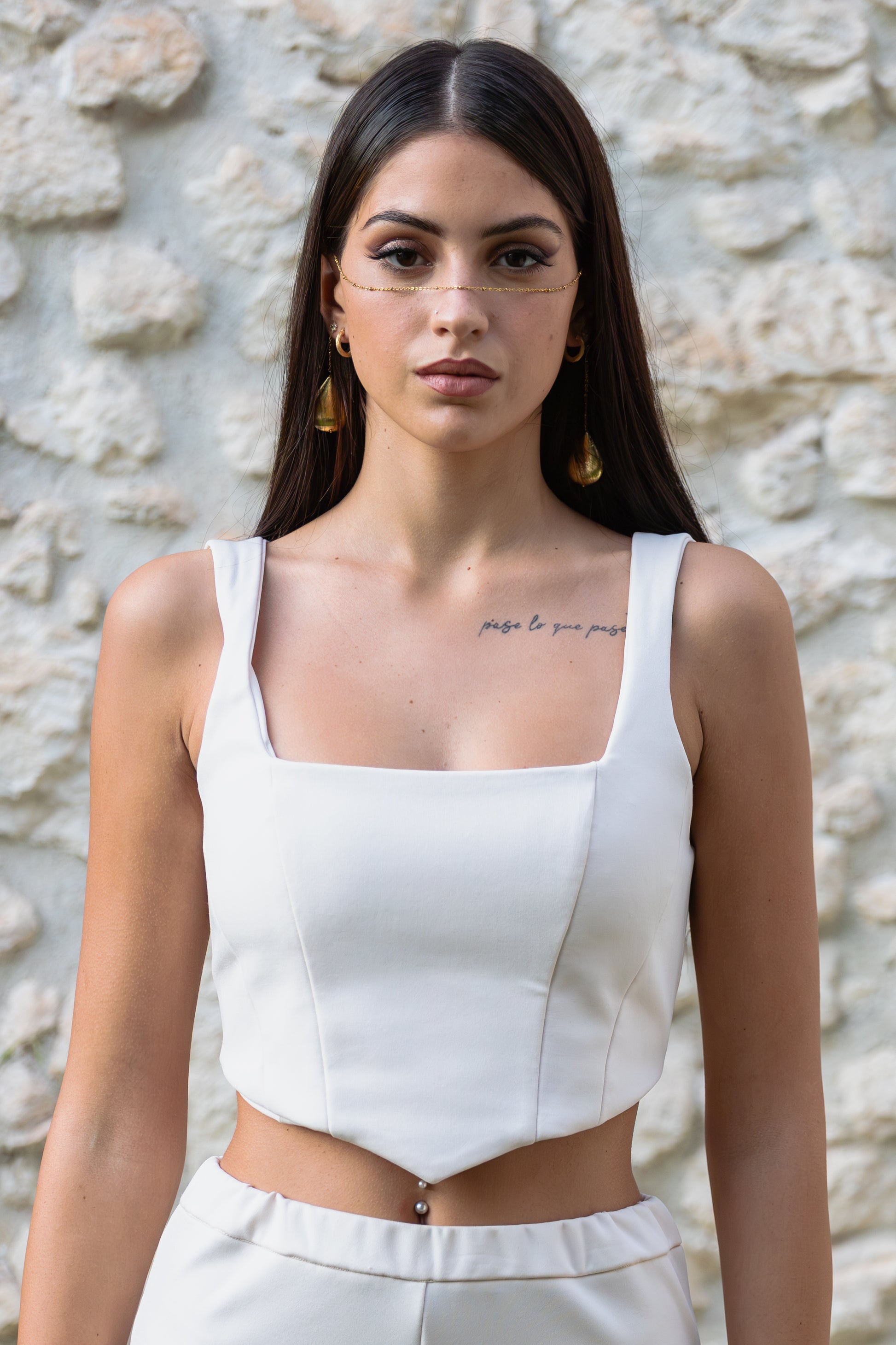 il corpetto “Daphne” si abbina perfettamente a ogni occasione, dal casual chic alle serate più raffinate.