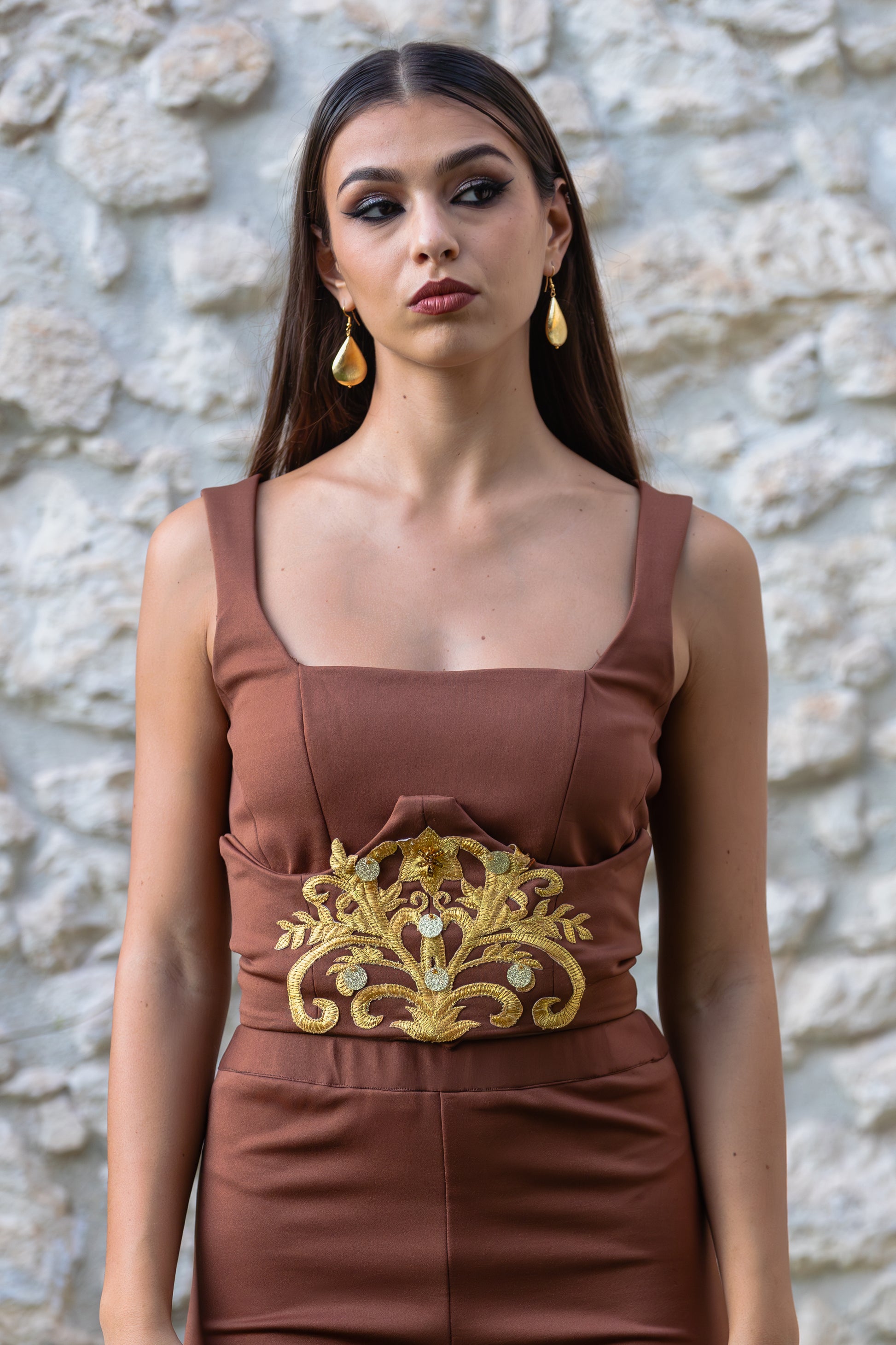 - Ricamo: dettaglio prezioso in oro sul davanti.
