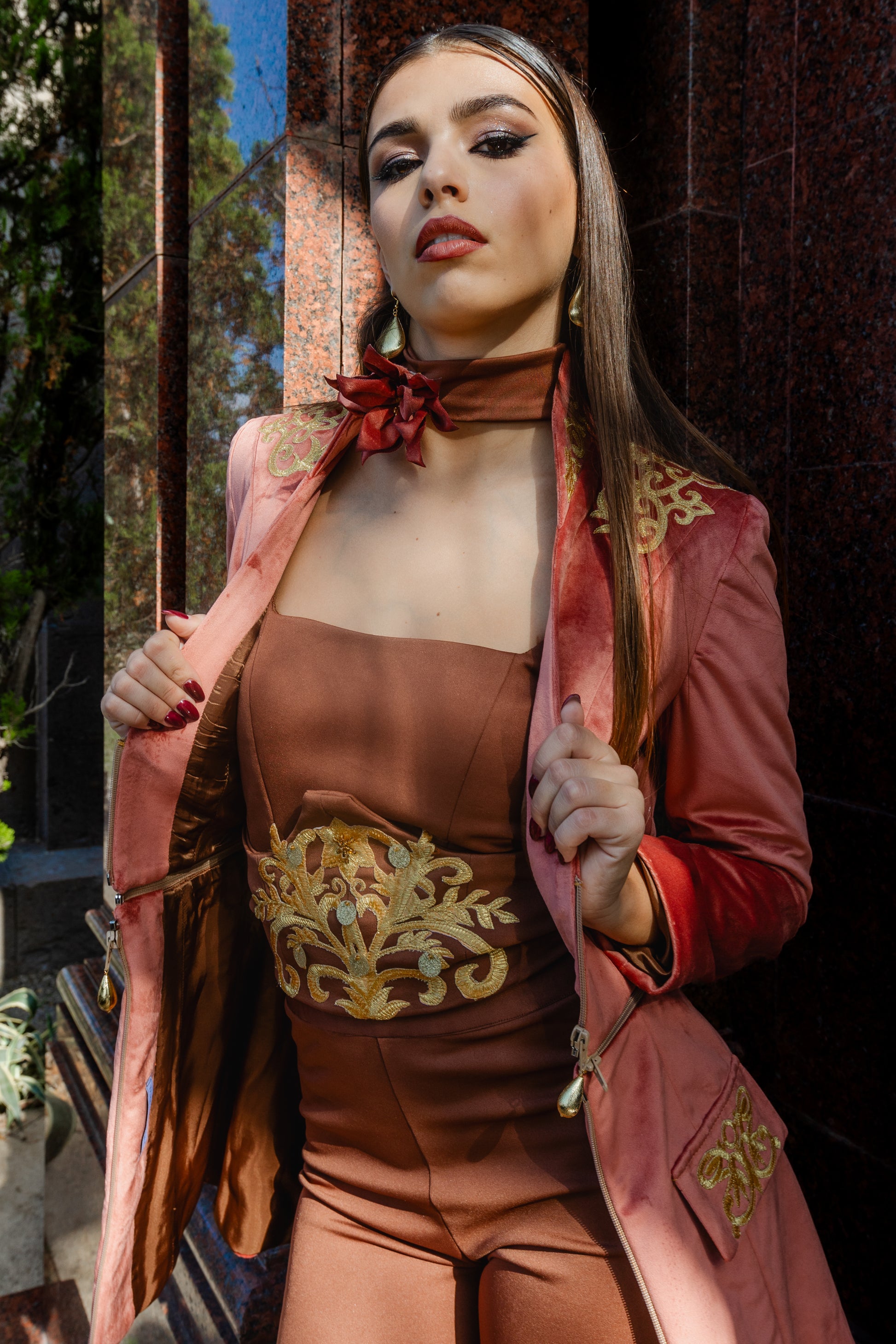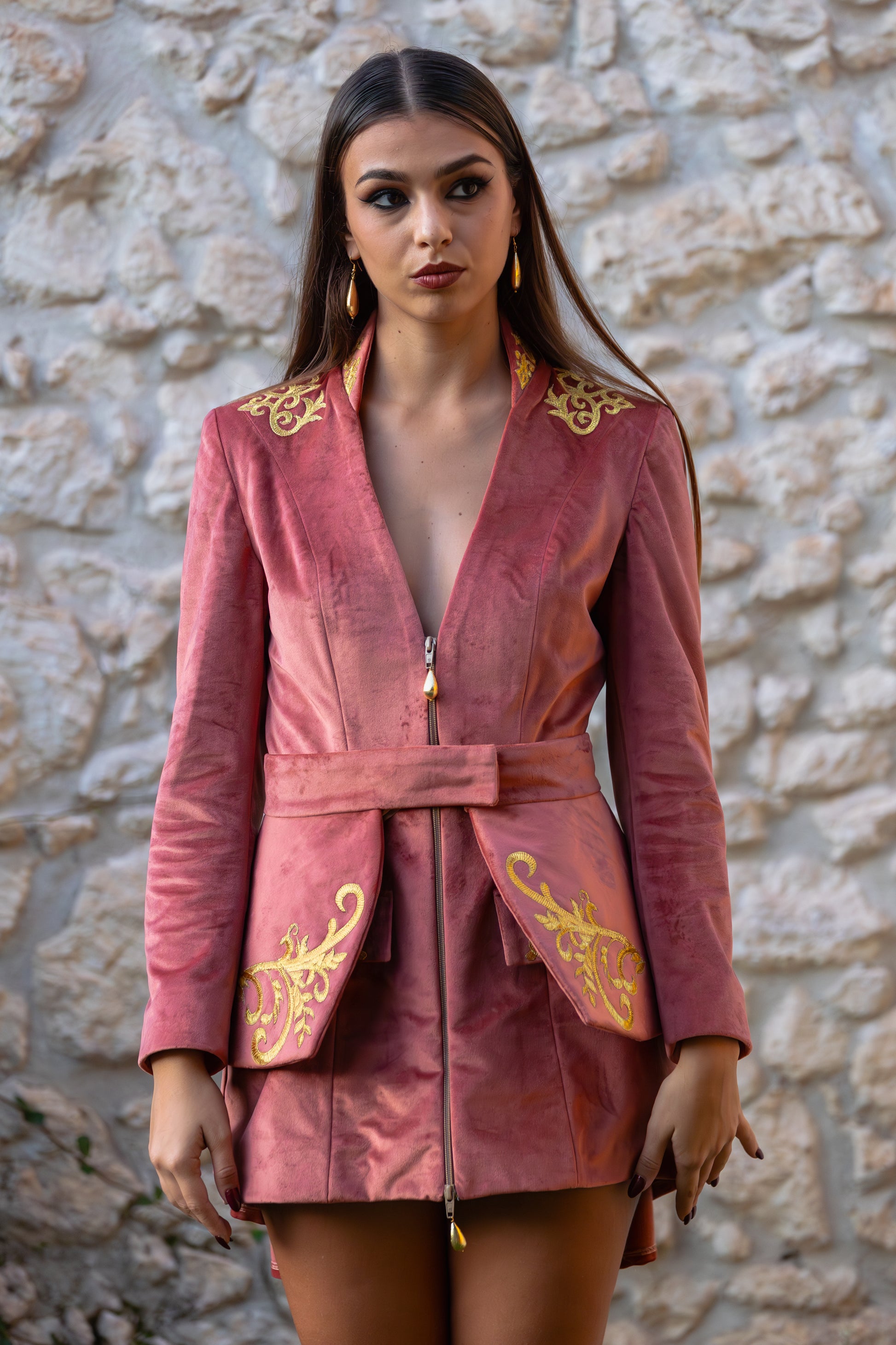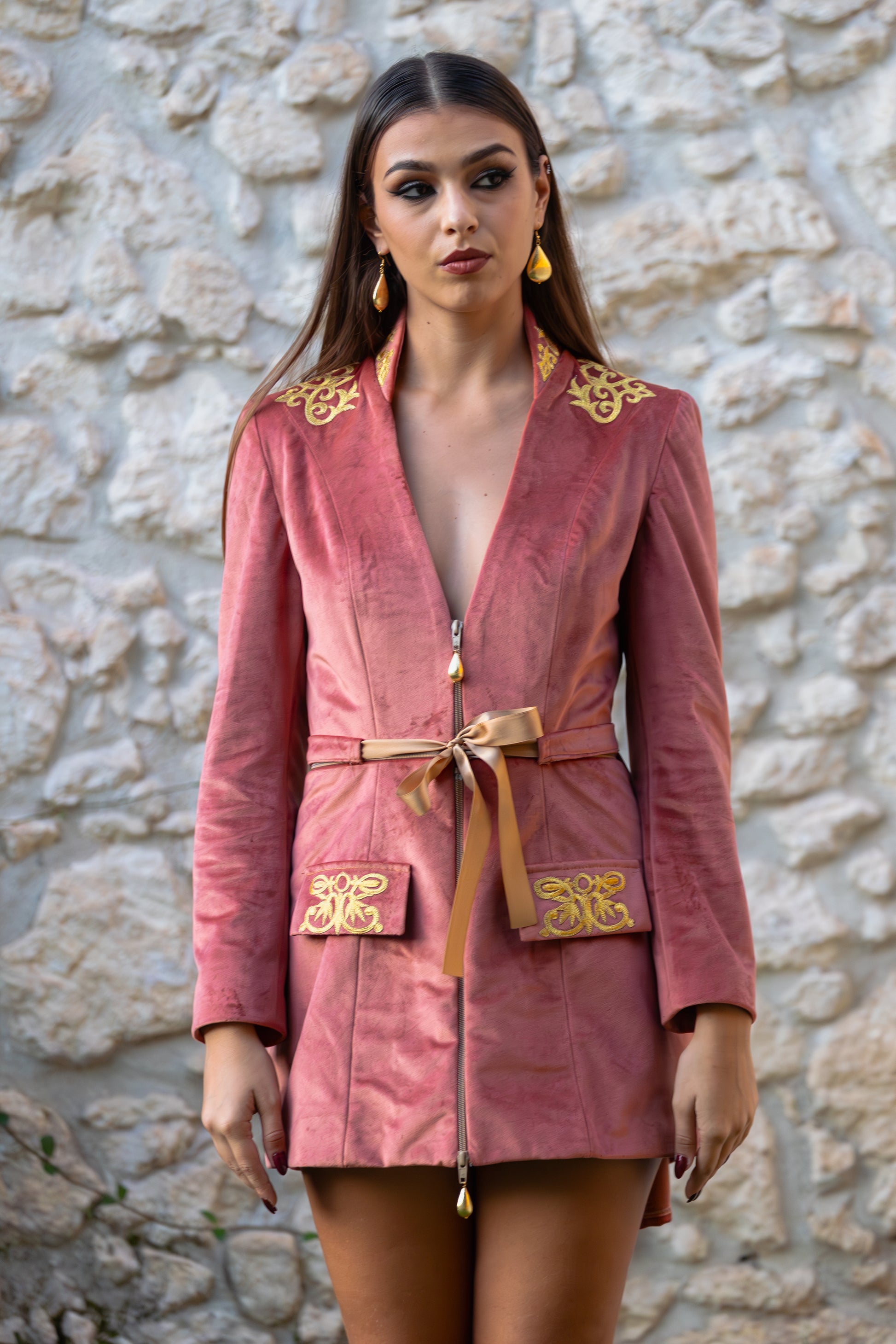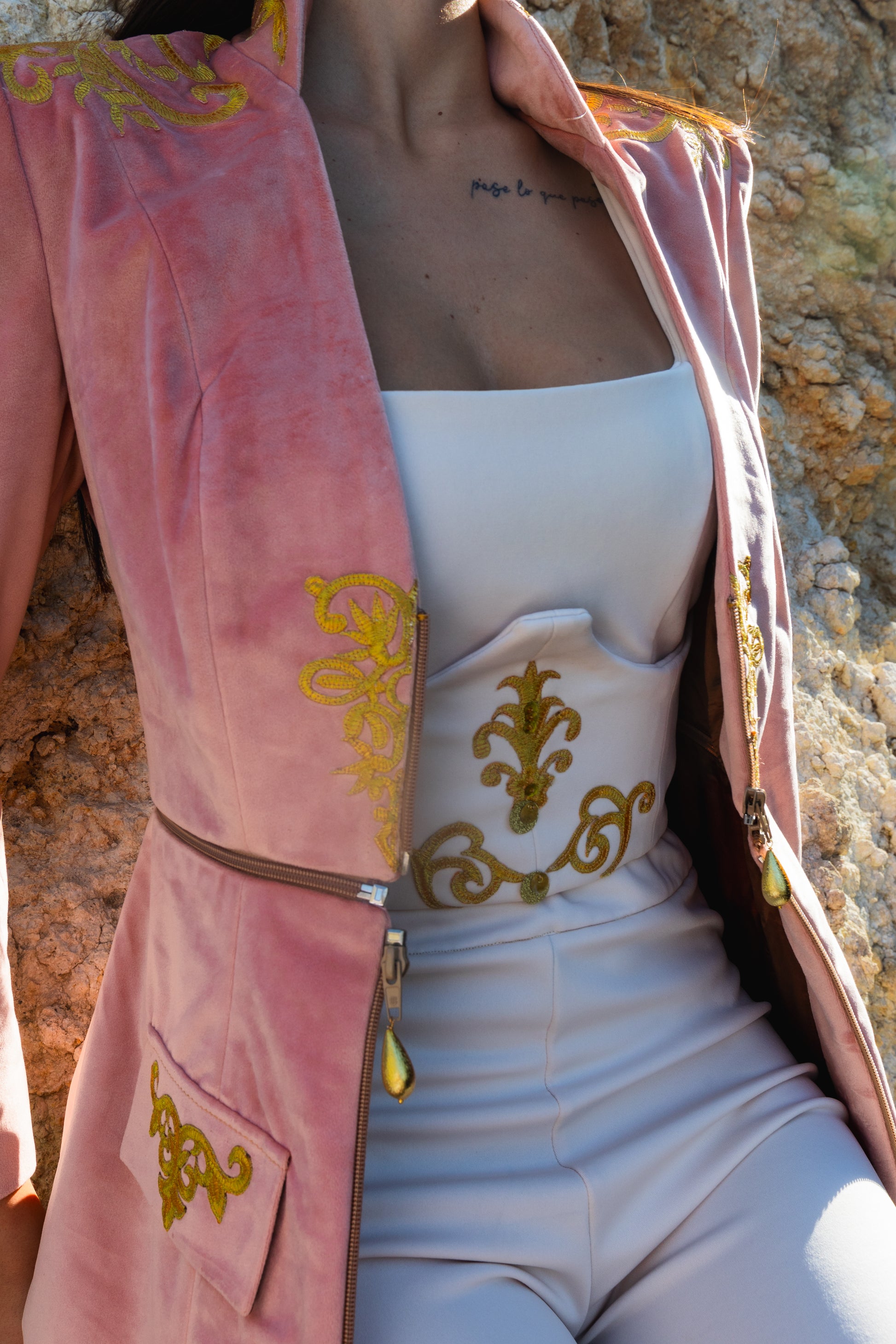 Scopri la giacca Modular™ della nostra esclusiva Musa Collection: un capo unico che reinventa il concetto di moda dinamica e sofisticata. Realizzata artigianalmente nella nostra sartoria in Sardegna, ogni giacca è un'opera di alta sartoria, pensata per offrire una versatilità senza pari. Realizzata in velluto di altissima qualità, disponibile nei raffinati colori rosa antico e pesca, questa giacca ti permette di trasformare il tuo look con un semplice gesto.
