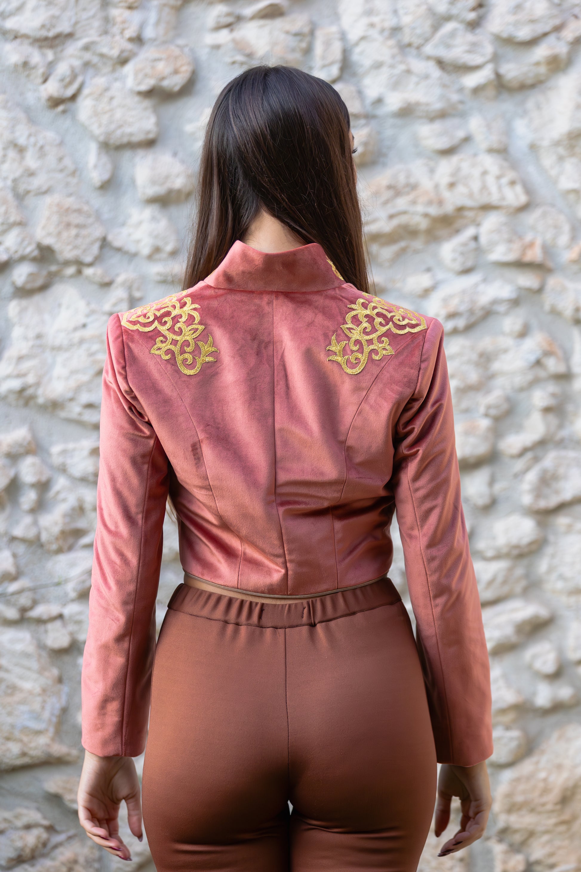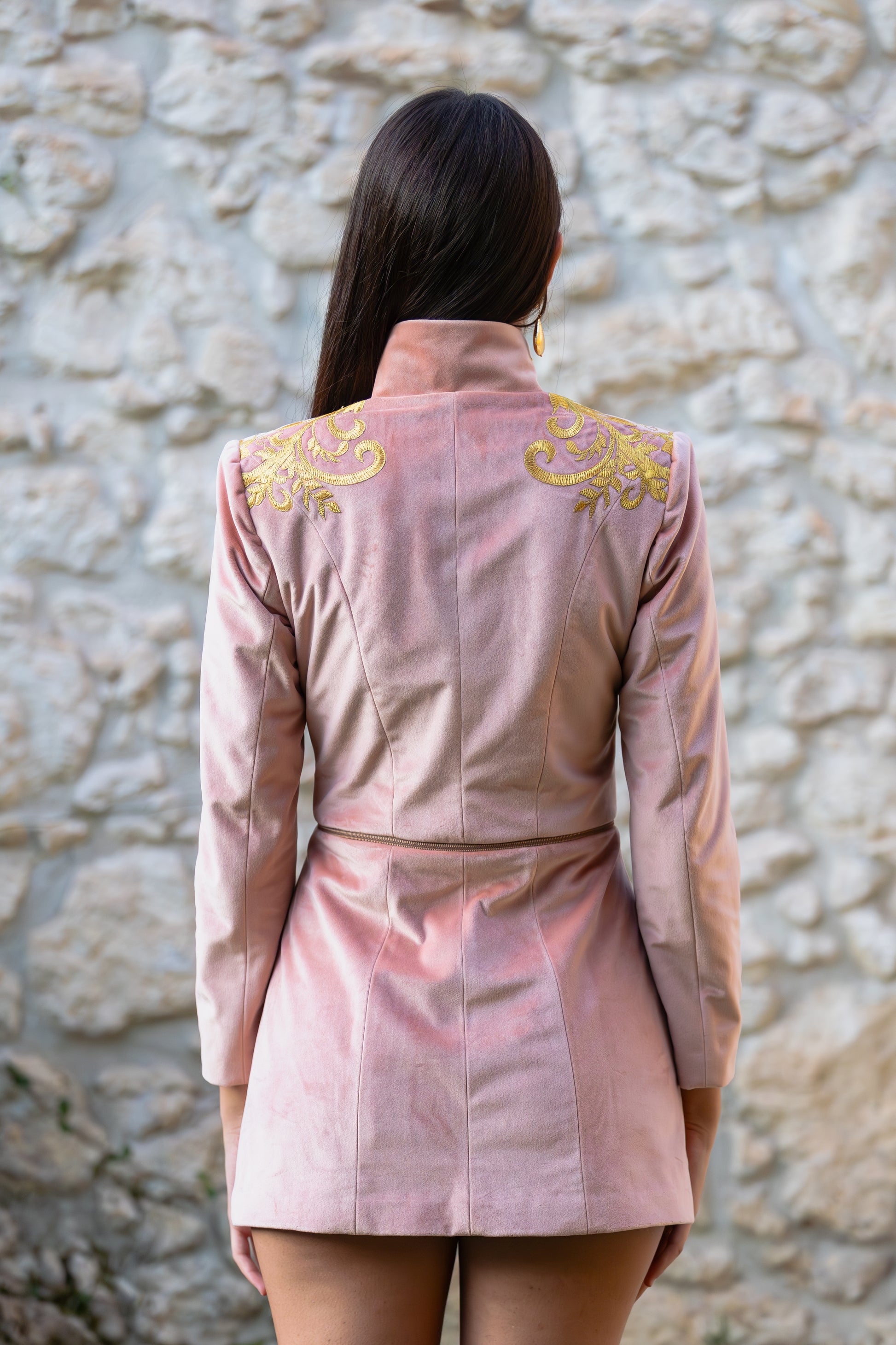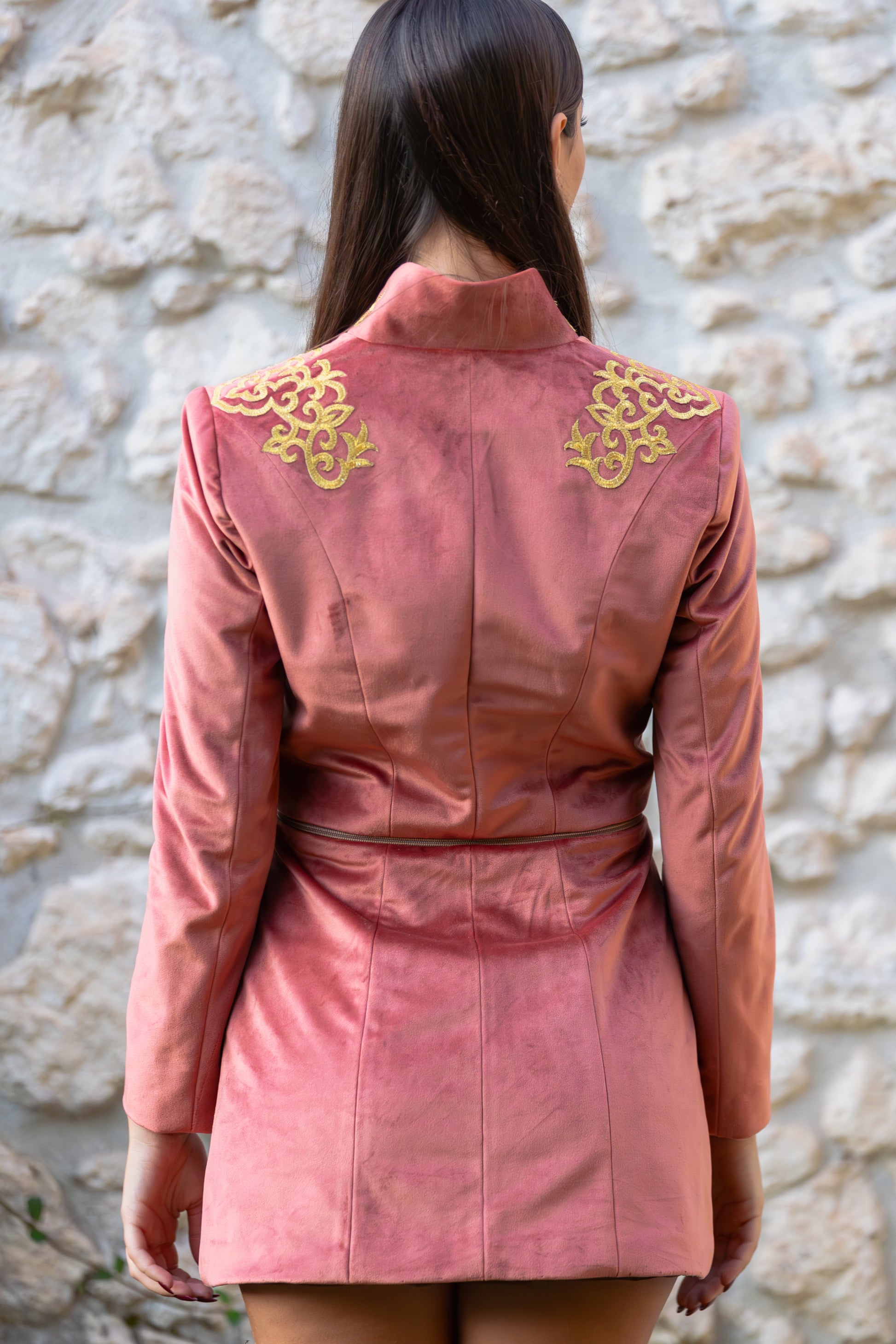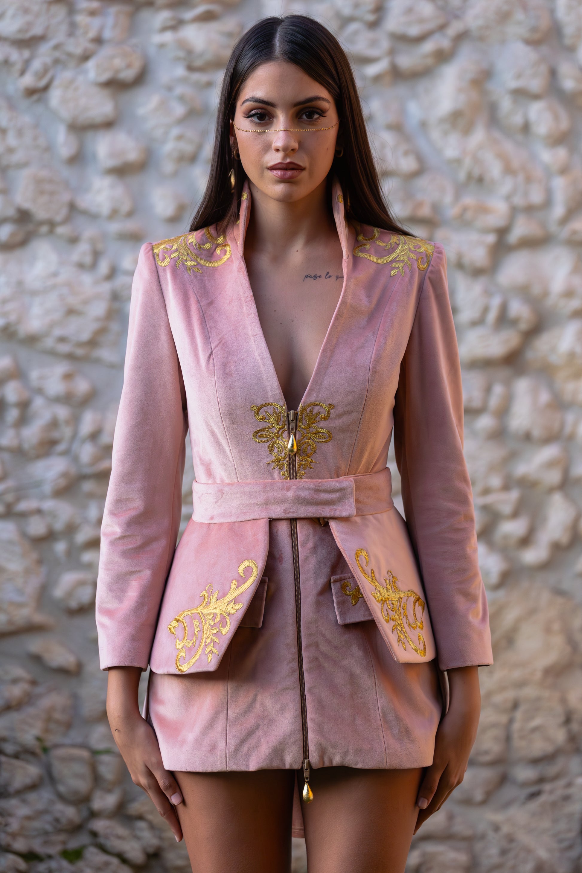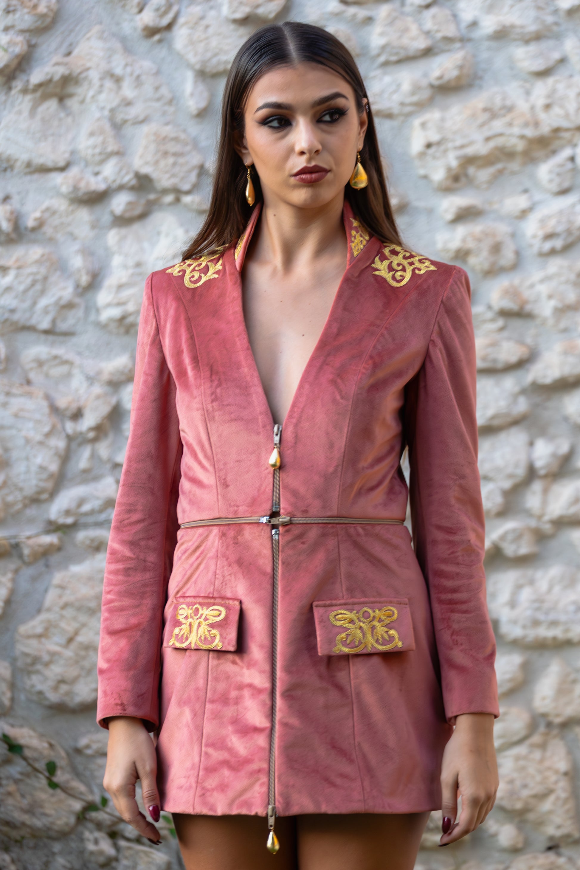 Scopri la giacca Modular™ della nostra esclusiva Musa Collection: un capo unico che reinventa il concetto di moda dinamica e sofisticata. Realizzata artigianalmente nella nostra sartoria in Sardegna, ogni giacca è un'opera di alta sartoria, pensata per offrire una versatilità senza pari. Realizzata in velluto di altissima qualità, disponibile nei raffinati colori rosa antico e pesca, questa giacca ti permette di trasformare il tuo look con un semplice gesto.