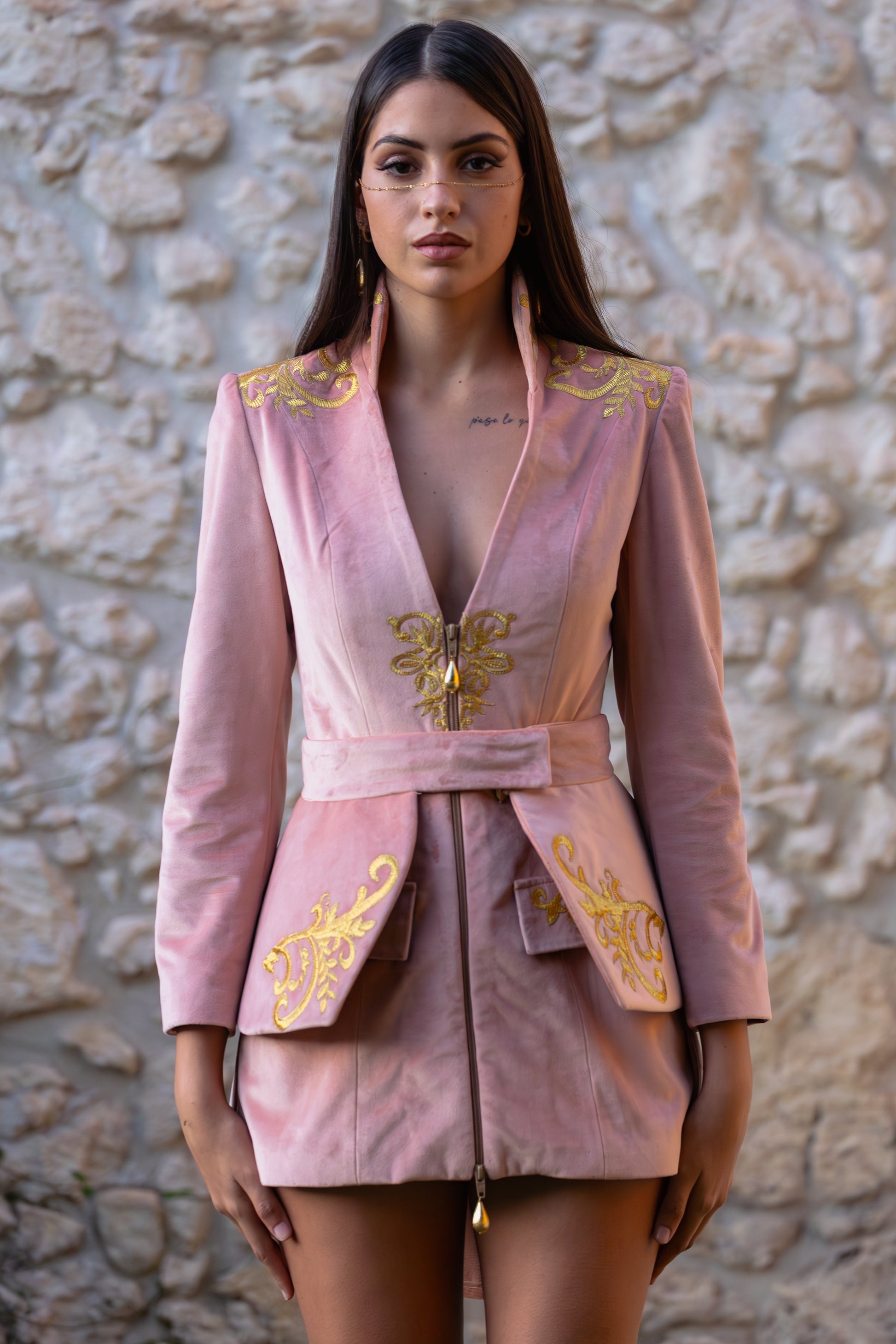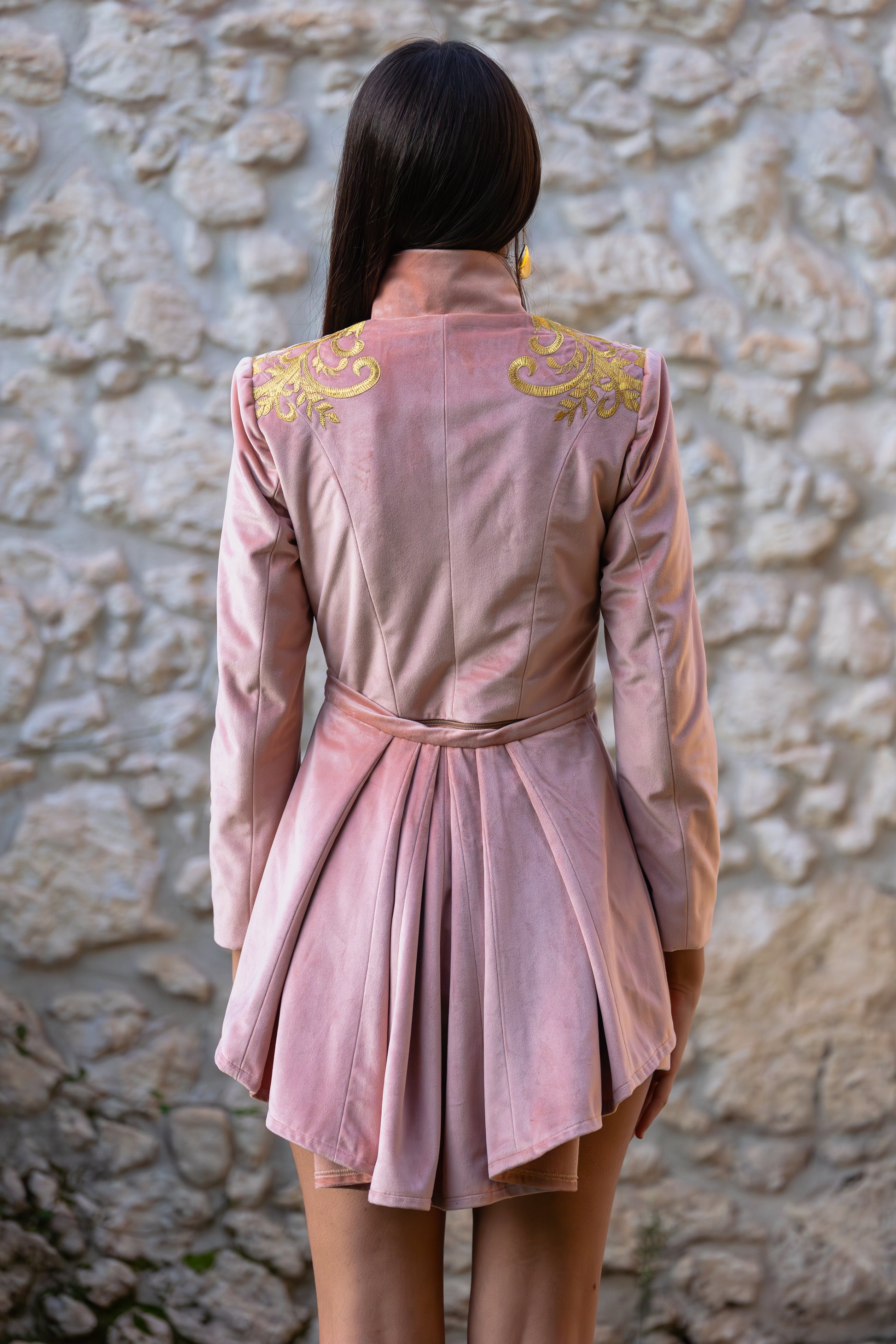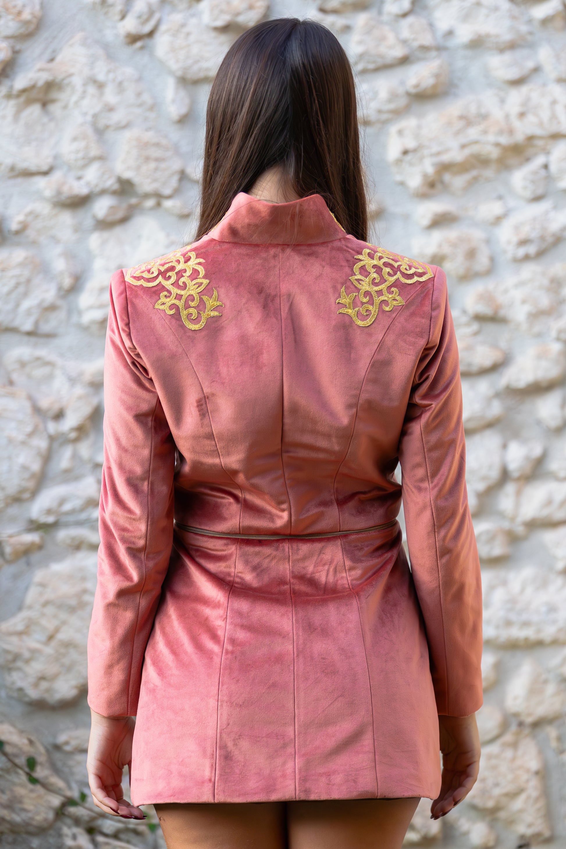 Scopri la giacca Modular™ della nostra esclusiva Musa Collection: un capo unico che reinventa il concetto di moda dinamica e sofisticata. Realizzata artigianalmente nella nostra sartoria in Sardegna, ogni giacca è un'opera di alta sartoria, pensata per offrire una versatilità senza pari. Realizzata in velluto di altissima qualità, disponibile nei raffinati colori rosa antico e pesca, questa giacca ti permette di trasformare il tuo look con un semplice gesto.