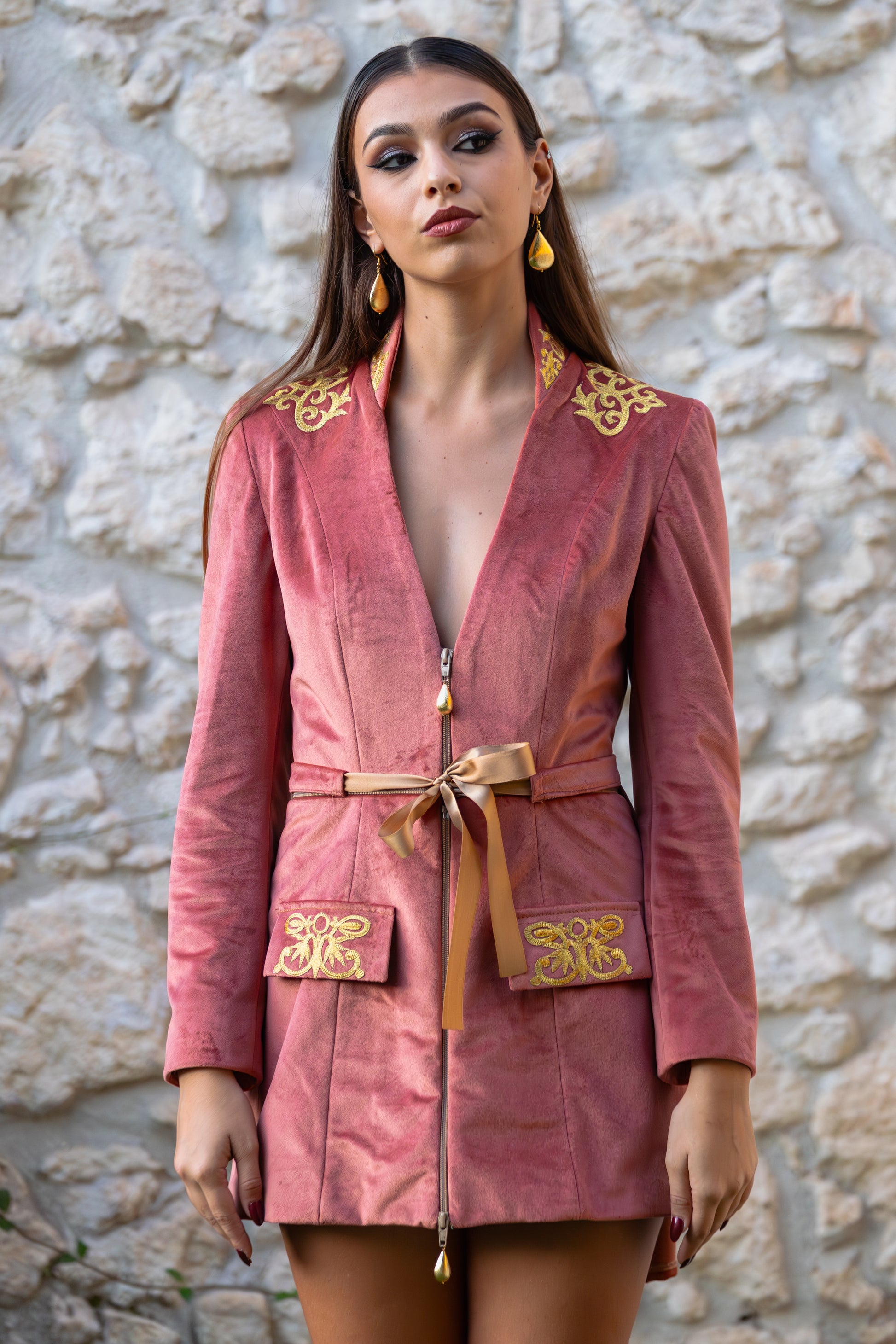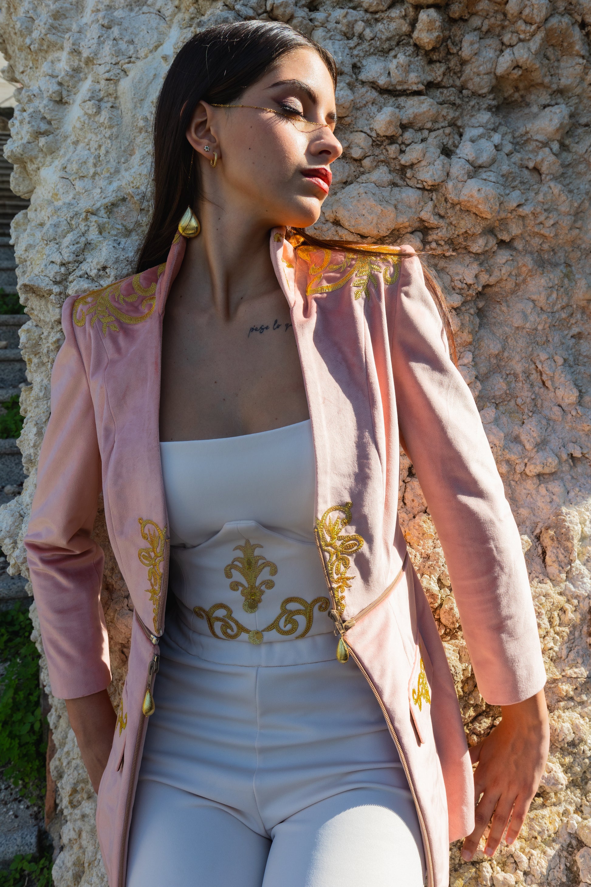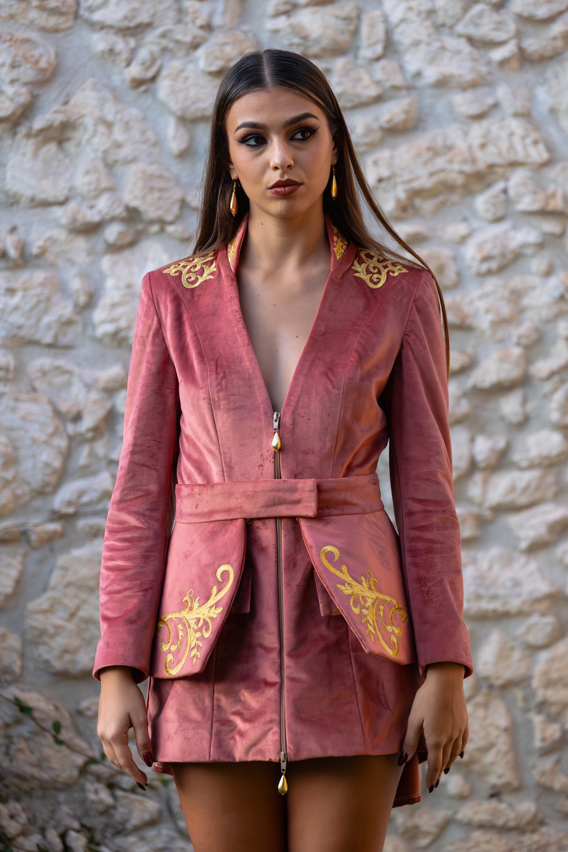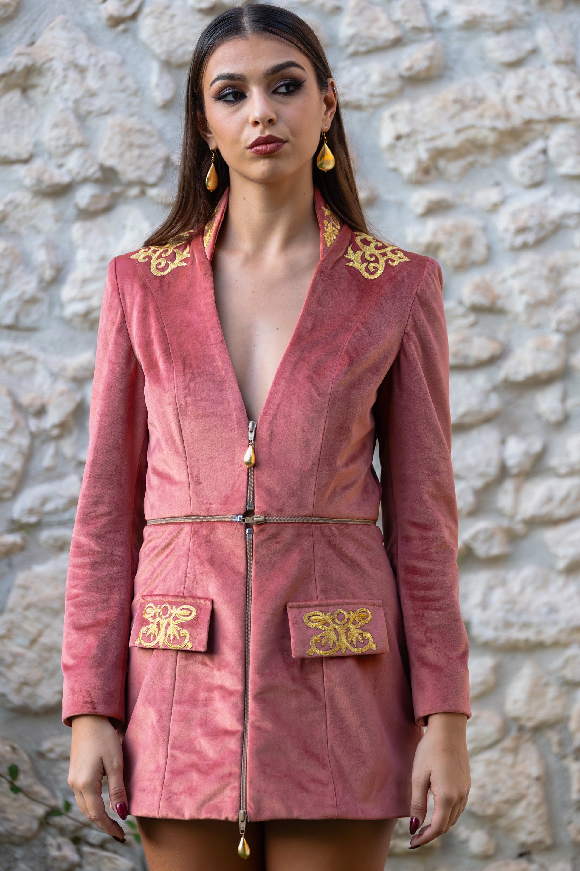 Scopri la giacca Modular™ della nostra esclusiva Musa Collection: un capo unico che reinventa il concetto di moda dinamica e sofisticata. Realizzata artigianalmente nella nostra sartoria in Sardegna, ogni giacca è un'opera di alta sartoria, pensata per offrire una versatilità senza pari. Realizzata in velluto di altissima qualità, disponibile nei raffinati colori rosa antico e pesca, questa giacca ti permette di trasformare il tuo look con un semplice gesto.