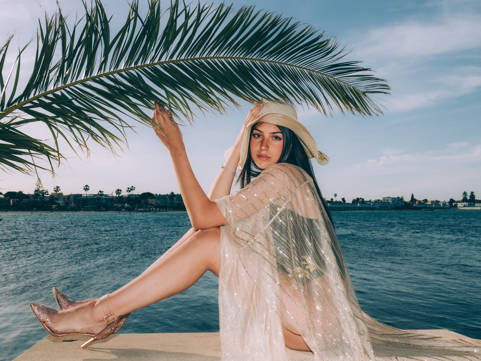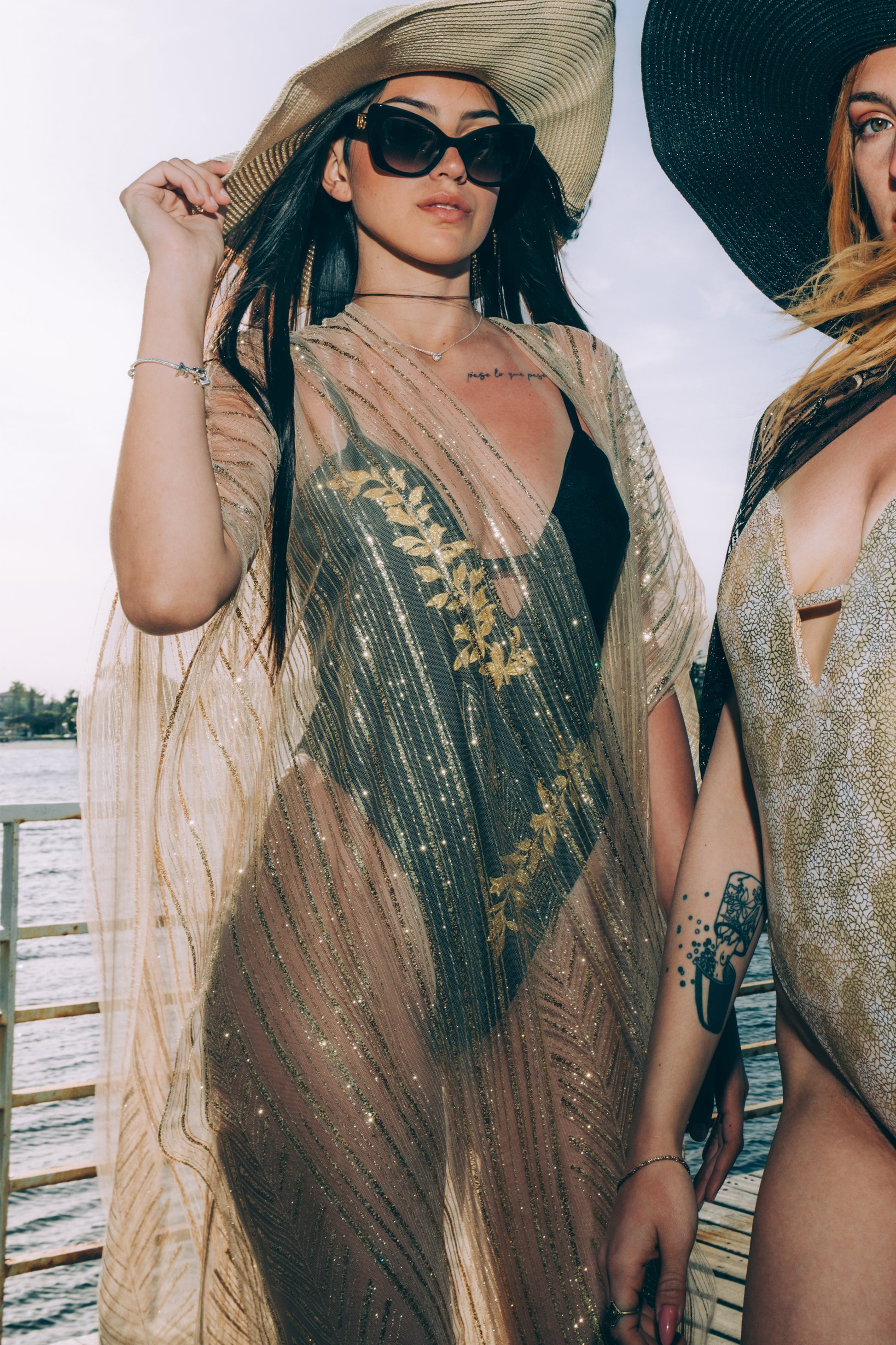 Un caftano lungo e sontuoso, pensato per esaltare la figura in modo regale, lasciando spazio al movimento, alla luce e alla bellezza naturale del corpo.
