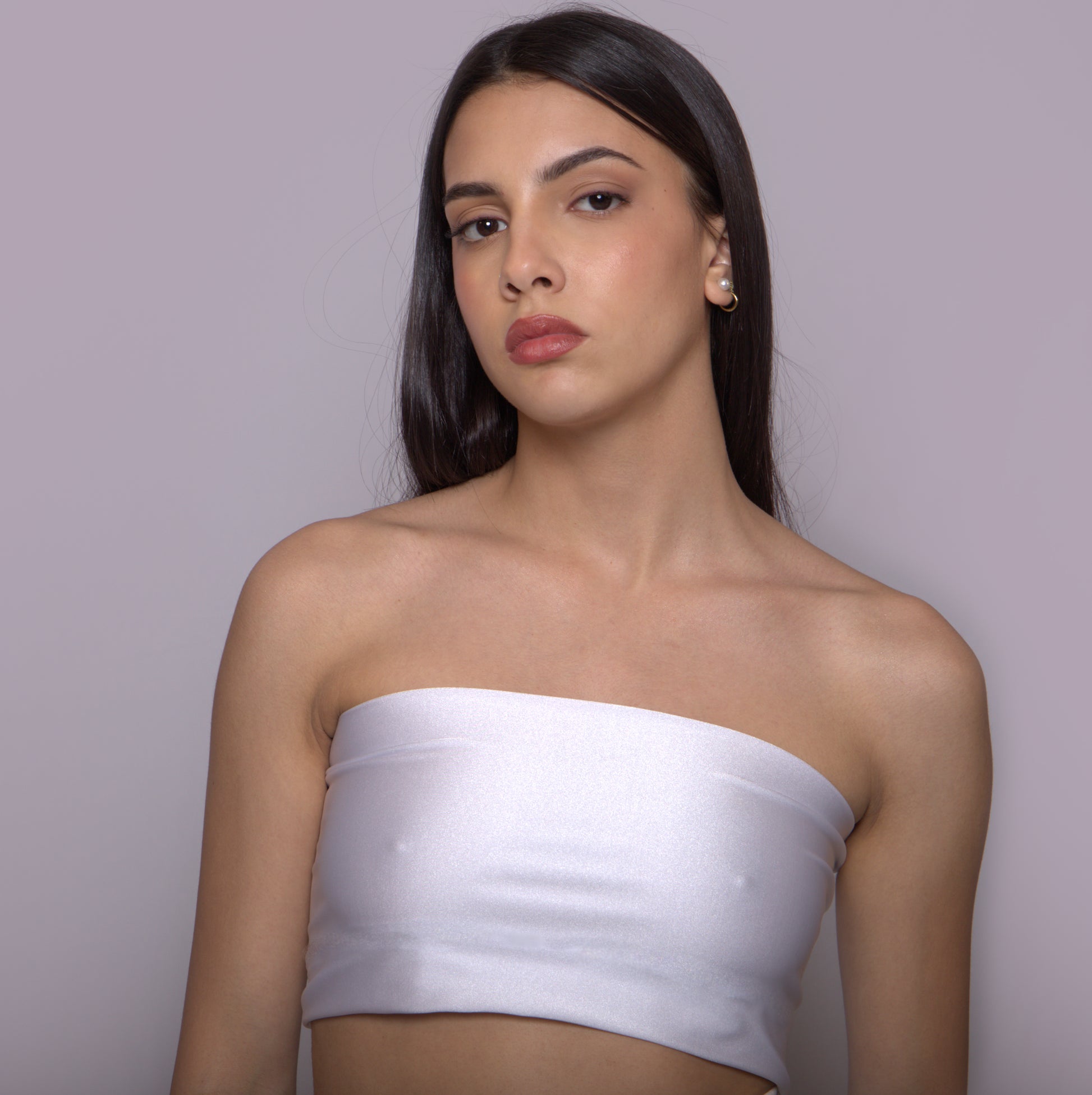 Top in tre colorazioni, Tabacco, Avorio e Ghiaccio, realizzato in Neoprene Ecologico .